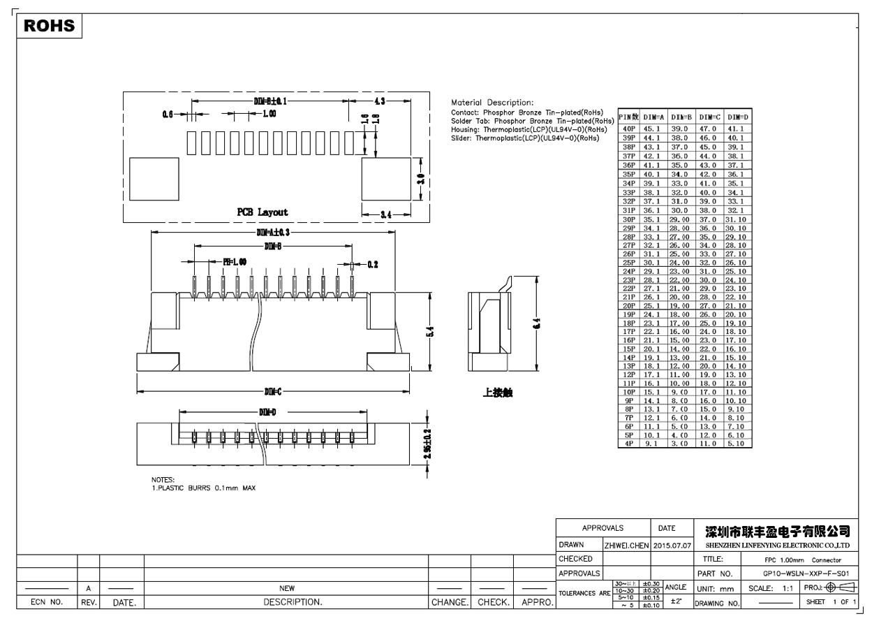 產(chǎn)品簡介品名:FPC連接器規(guī)格:臥式貼片/90°間距:1.0mm/上接觸PIN數(shù):4P-40P高度:2.5mm