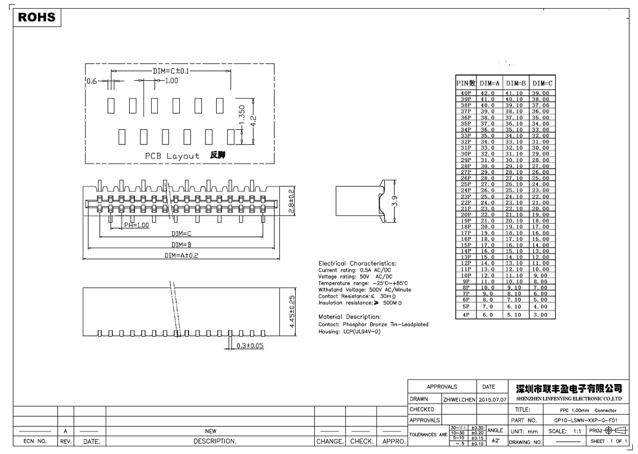 產(chǎn)品簡(jiǎn)介品名:FPC連接器規(guī)格:立式貼片/180°間距:1.0mm/反向PIN數(shù):4P-40P高度:4.45mm