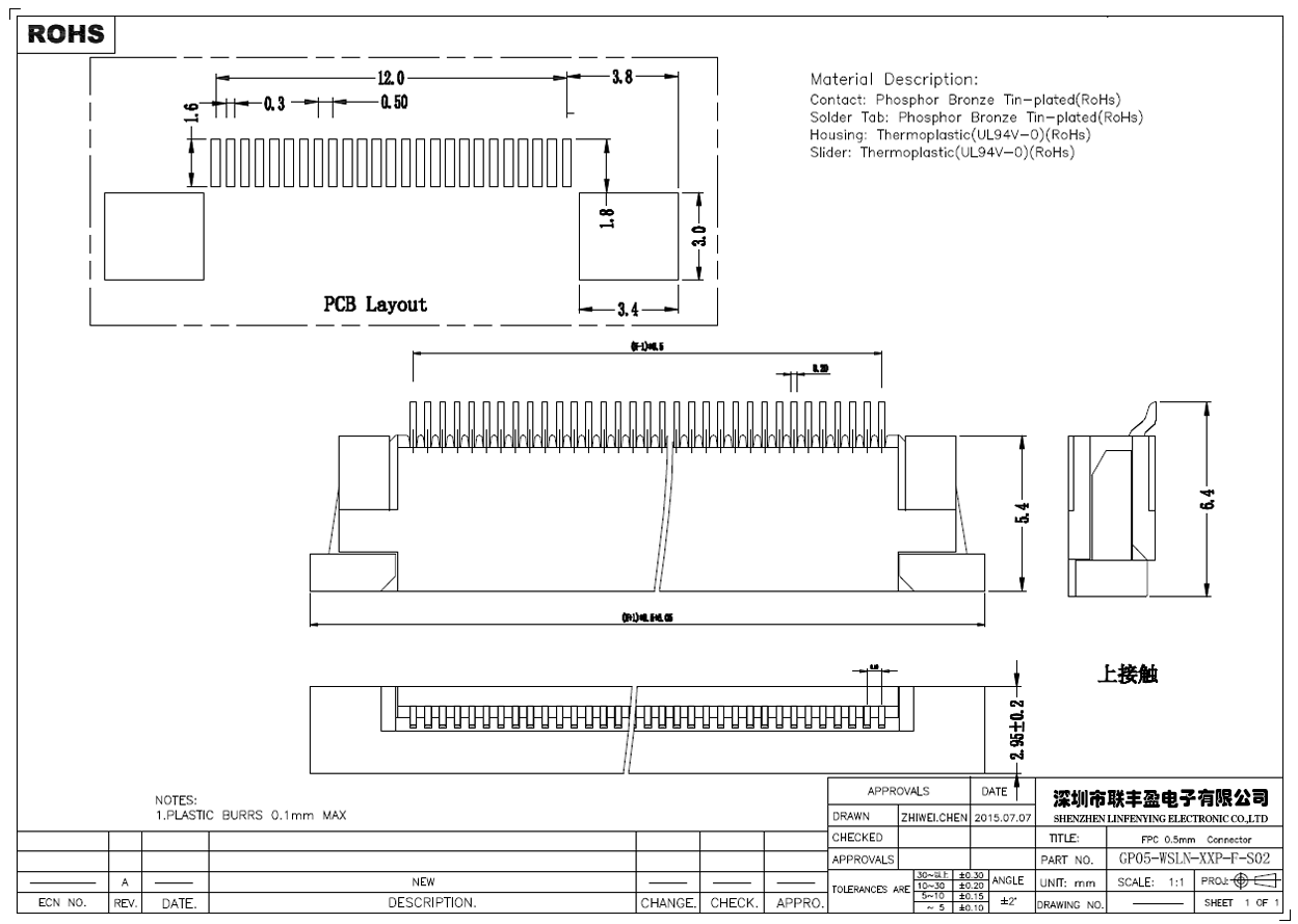 間距:0.5mm/拉拔上接觸