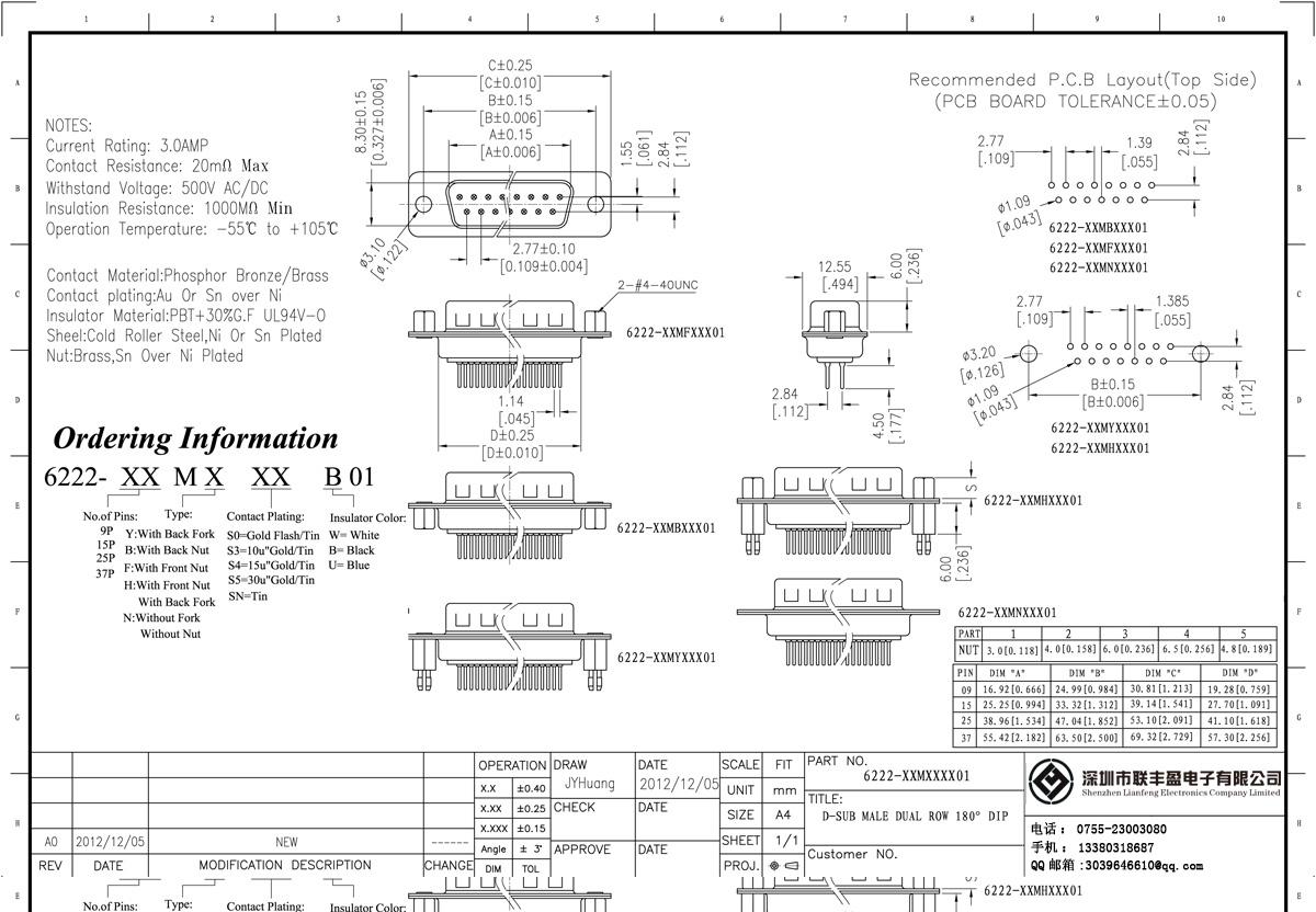 技術(shù)參數(shù):額定電流:3.0amp電流電阻:20mΩ最大絕緣電阻:1000mΩMIN承受電壓:AC 500V /分鐘工作溫度:55oC + 105oC接觸材料:黃銅、磷青銅觸點電鍍金或錫鎳絕緣體材質(zhì):聚酯(UL94V-0)標(biāo)準(zhǔn):PBT的+ 30%廣發(fā)殼:冷軋輥鋼,鍍鎳黃銅螺母:錫鎳板,