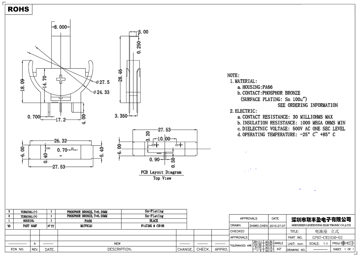 塑膠材質(zhì):1A=PBT BLACK ,1B=PA66 BLACK ,2A=PPA BROWN ,2B=PPA BLACK ,3A=PPS BROWN ,3B=PPS BLACK ,4A=LCP WHITE ,4B=LCP BLACK