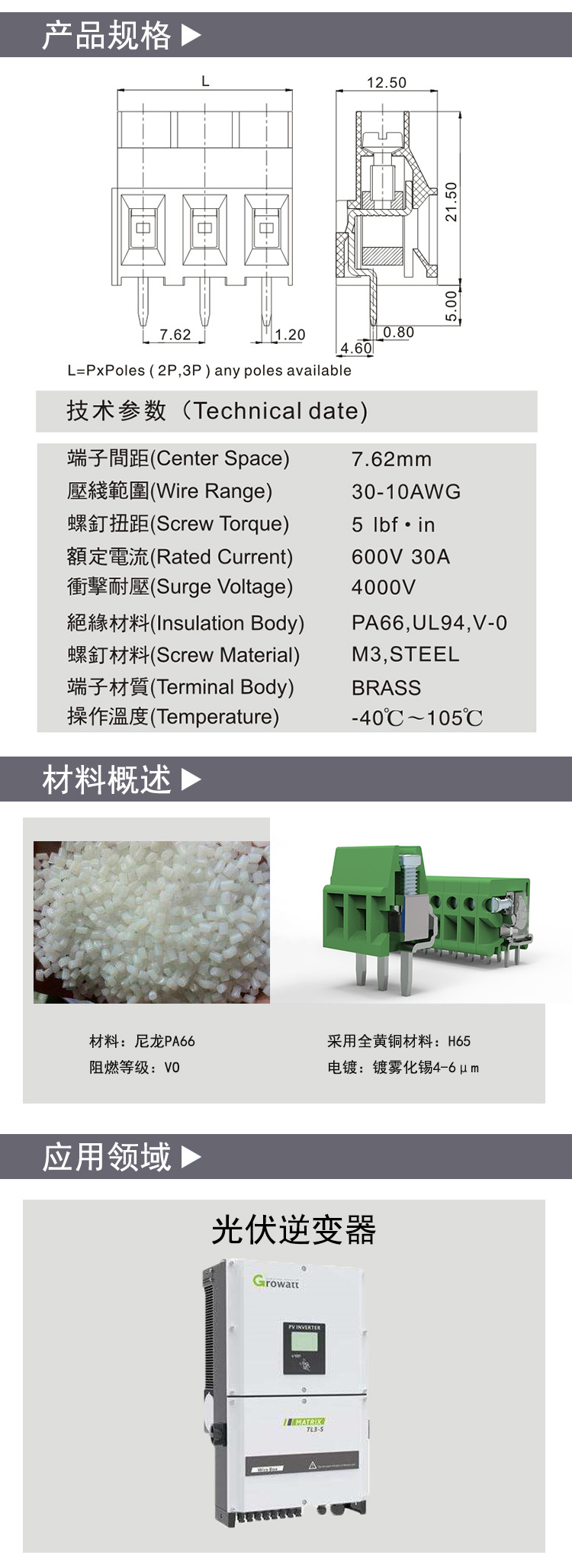 歐式接線端子7.62間距螺釘式600V 30A 02P-03P拼接參考圖紙