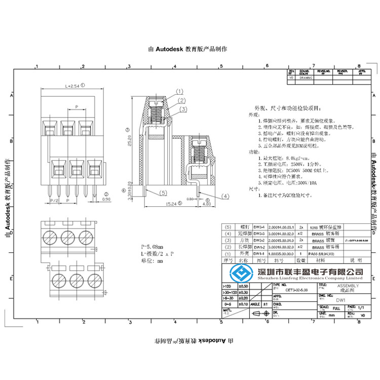 螺釘式PCB 5.08歐式接線端子 雙層端子 02P-03P拼接 技術(shù)參數(shù)