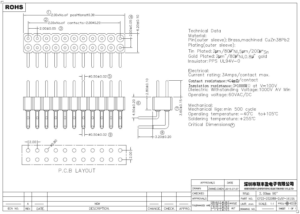 產(chǎn)品簡(jiǎn)介品名:排針規(guī)格:插件/臥式90°間距:2.54mmPIN數(shù):2-40PIN備注:排針系列