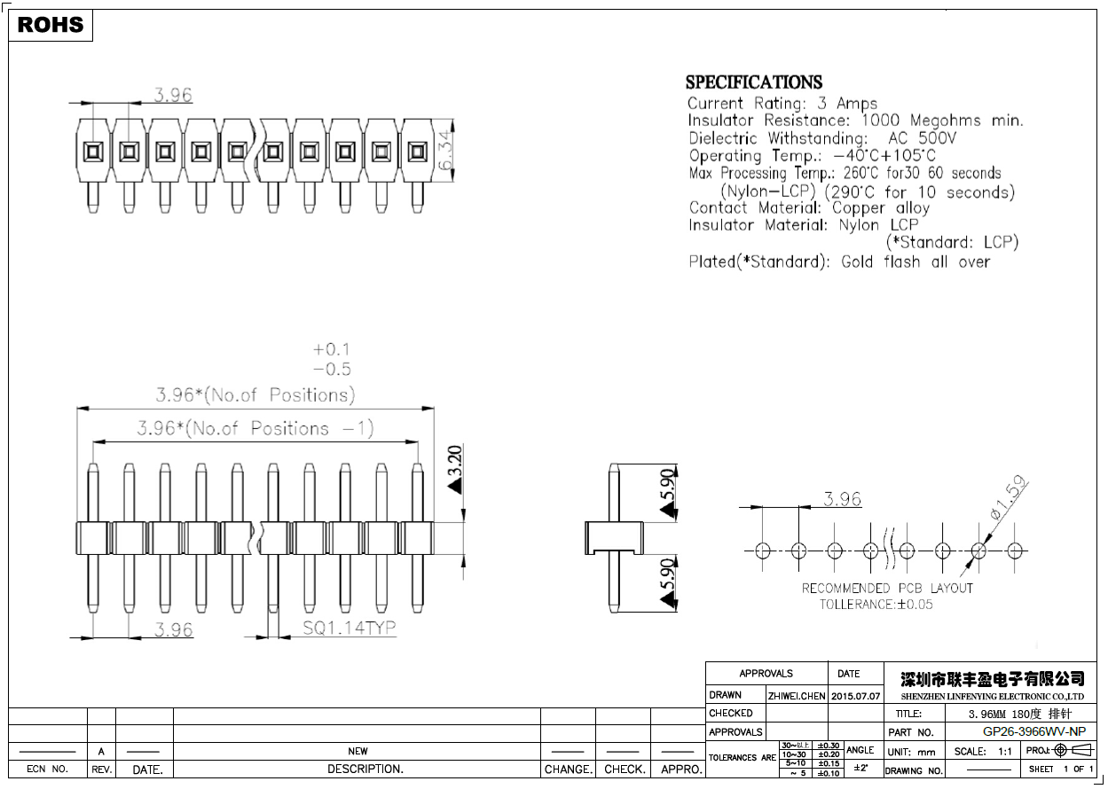產品簡介品名:排針規(guī)格:插件/直式180°間距:3.96mmPIN數(shù):2-40PIN備注:排針系列