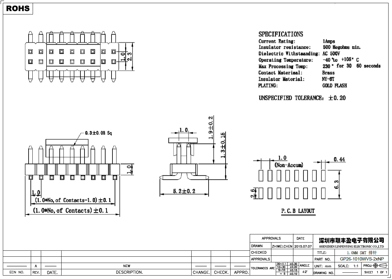 產(chǎn)品簡介品名:排針規(guī)格:貼片/立式180°間距:1.00mmPIN數(shù):2-40PIN備注:排針系列