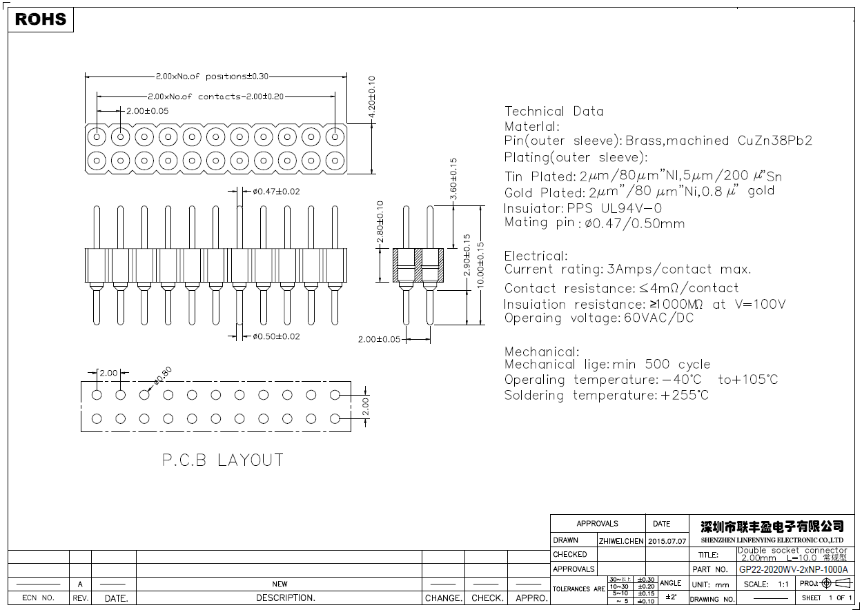 產(chǎn)品簡介品名:排針規(guī)格:插件/直式180°間距:2.00mmPIN數(shù):2-40PIN備注:圓孔排針系列