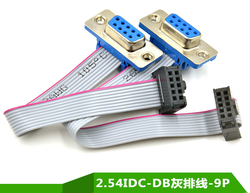 DB9P成品灰排線 2.54IDC-DB排線 壓排式母頭db9排線