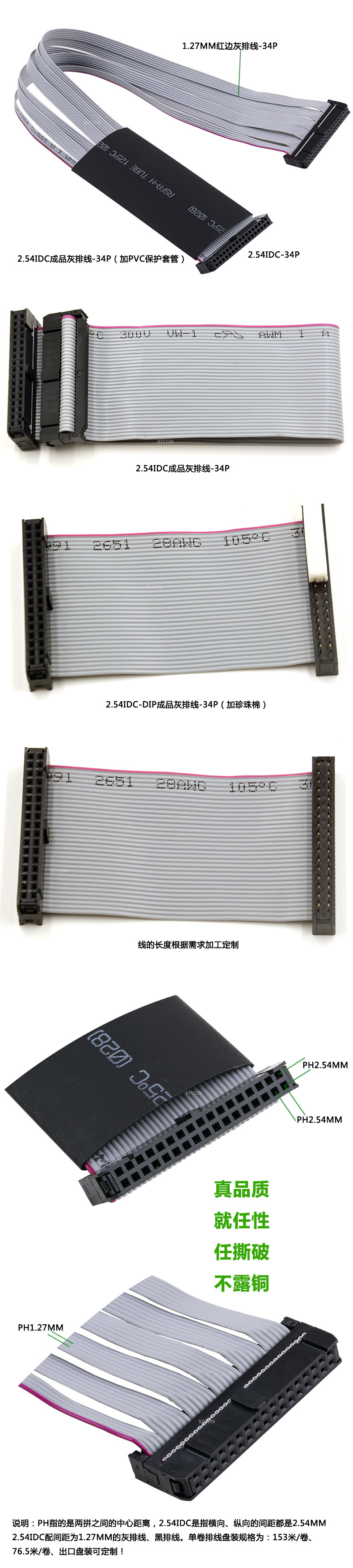 產(chǎn)品名稱:2.54IDC帶PVC套管成品灰排線-34P