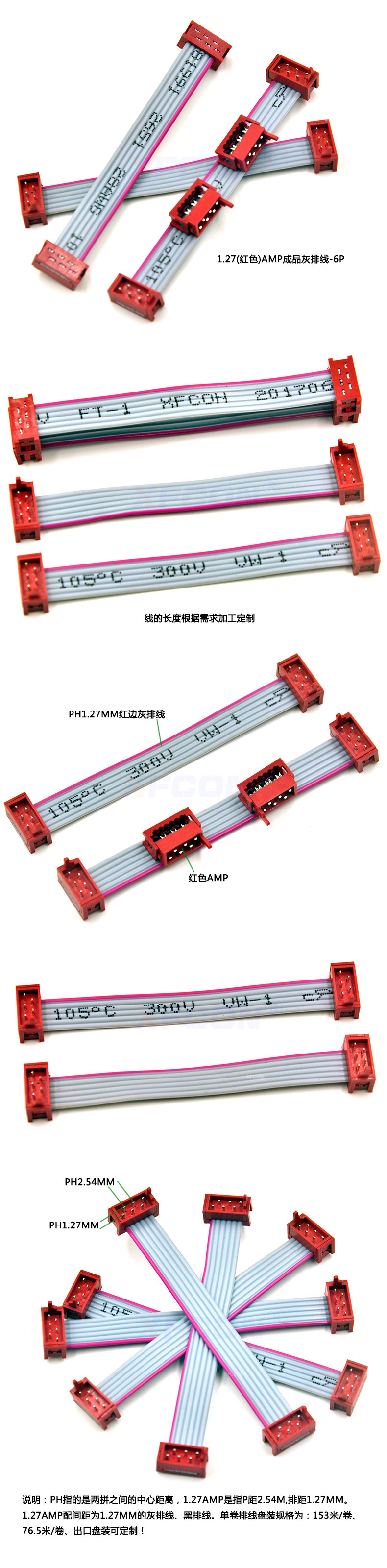 產(chǎn)品名稱:紅色1.27AMP成品灰排線-6P