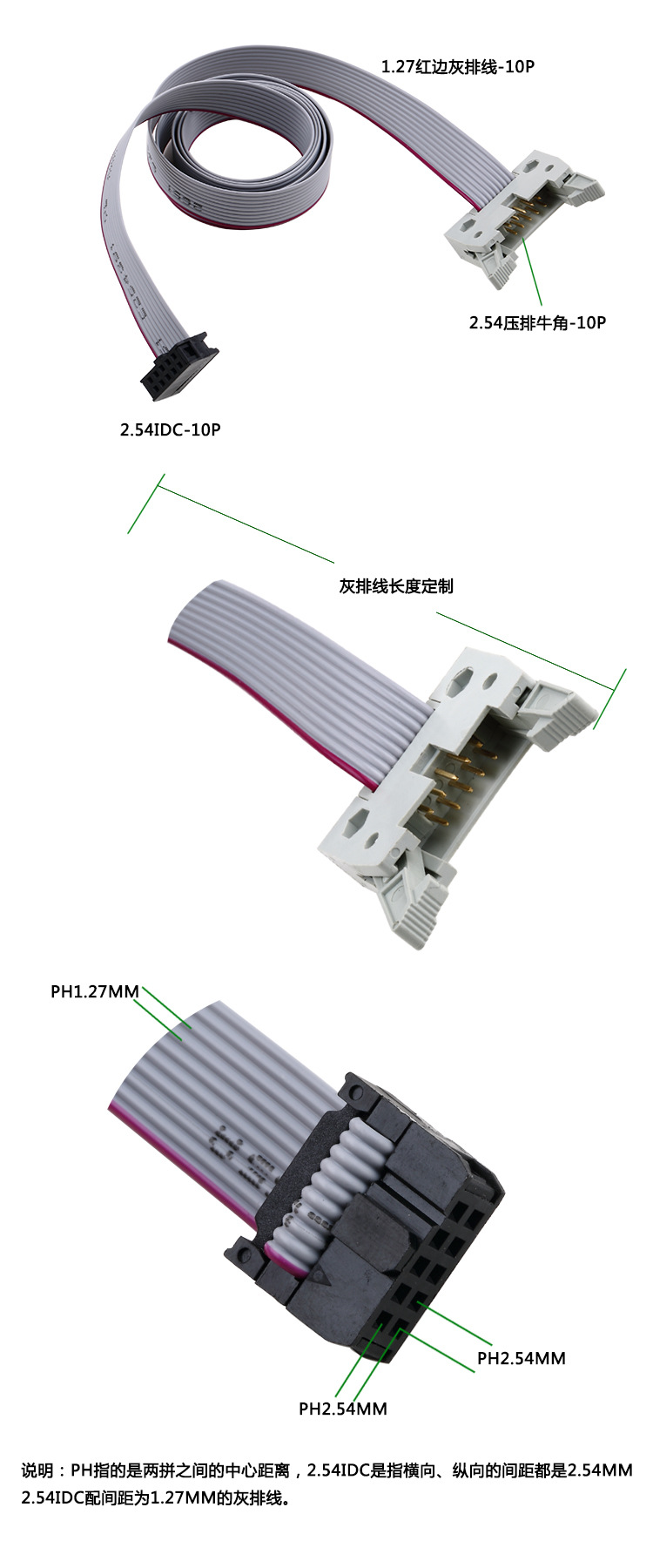產(chǎn)品名稱:2.54IDC-勾勾牛角成品灰排線-10P