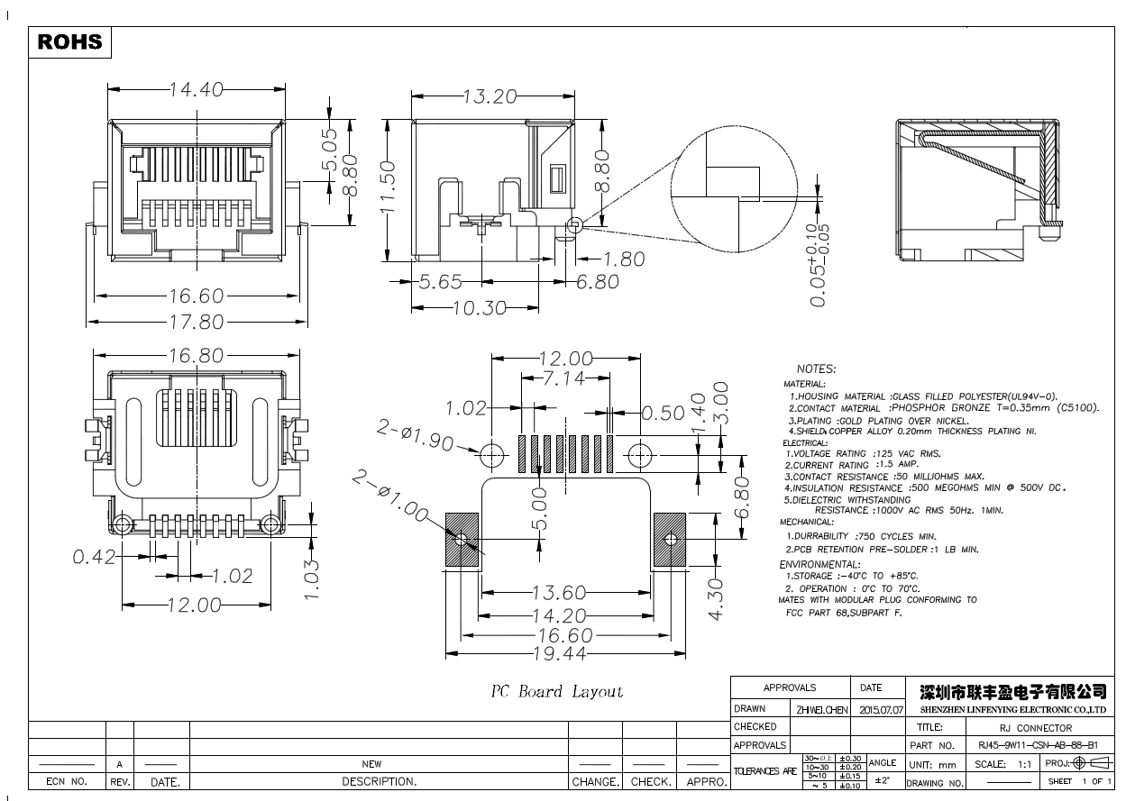RJ45/RJ11 網(wǎng)絡連接器系列產(chǎn)品技術參數(shù)