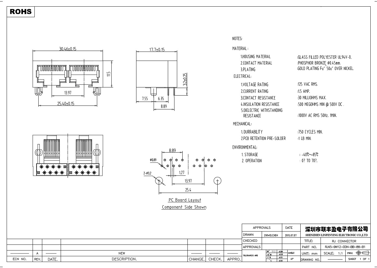 RJ45/RJ11 網(wǎng)絡(luò)連接器系列產(chǎn)品技術(shù)參數(shù)
