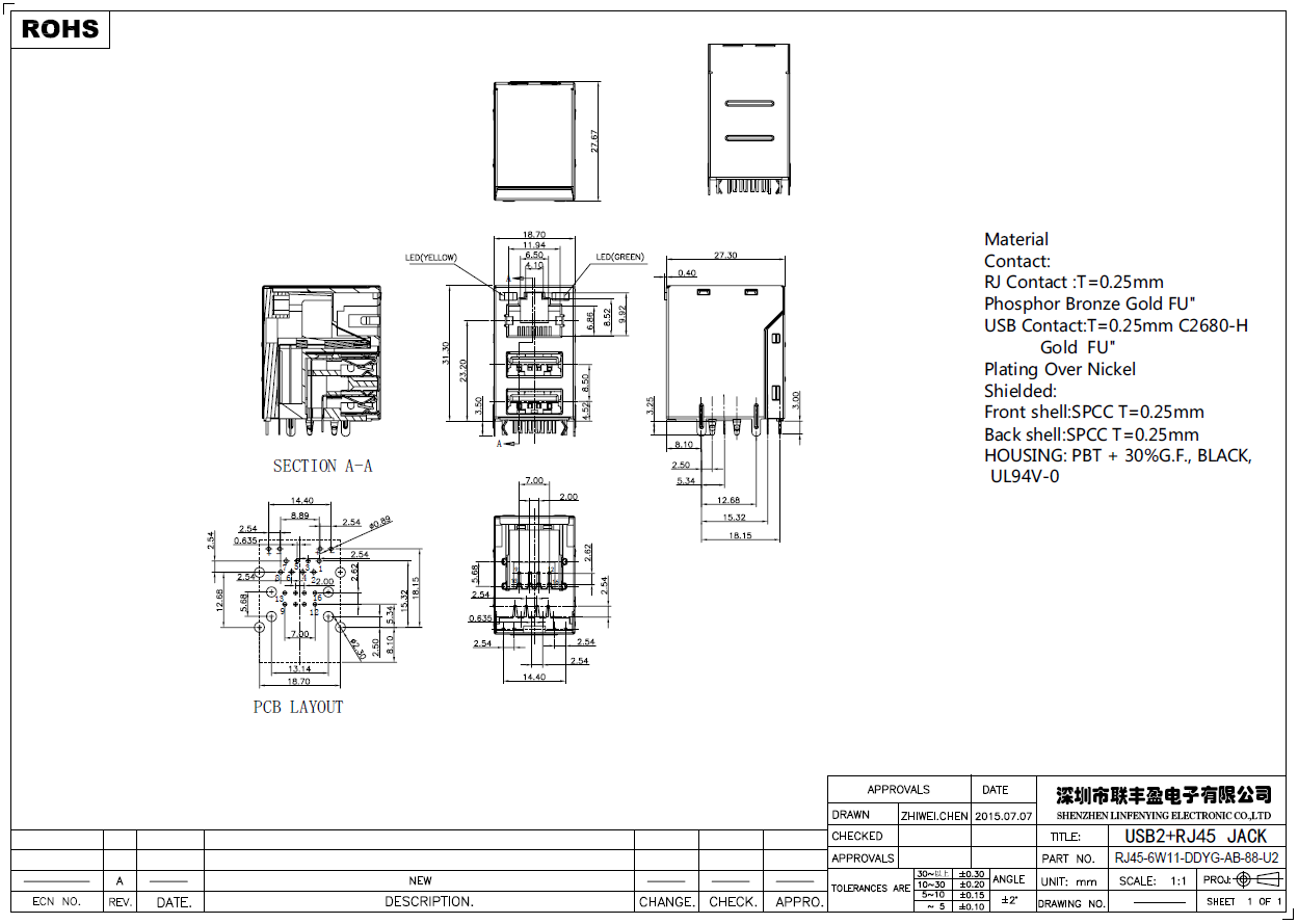 產(chǎn)品簡介品名:RJ45網(wǎng)絡(luò)連接器規(guī)格:臥式插件/90°外殼:帶屏蔽/帶USBLED燈:黃/綠-其它顏色可定制塑膠顏色:黑色