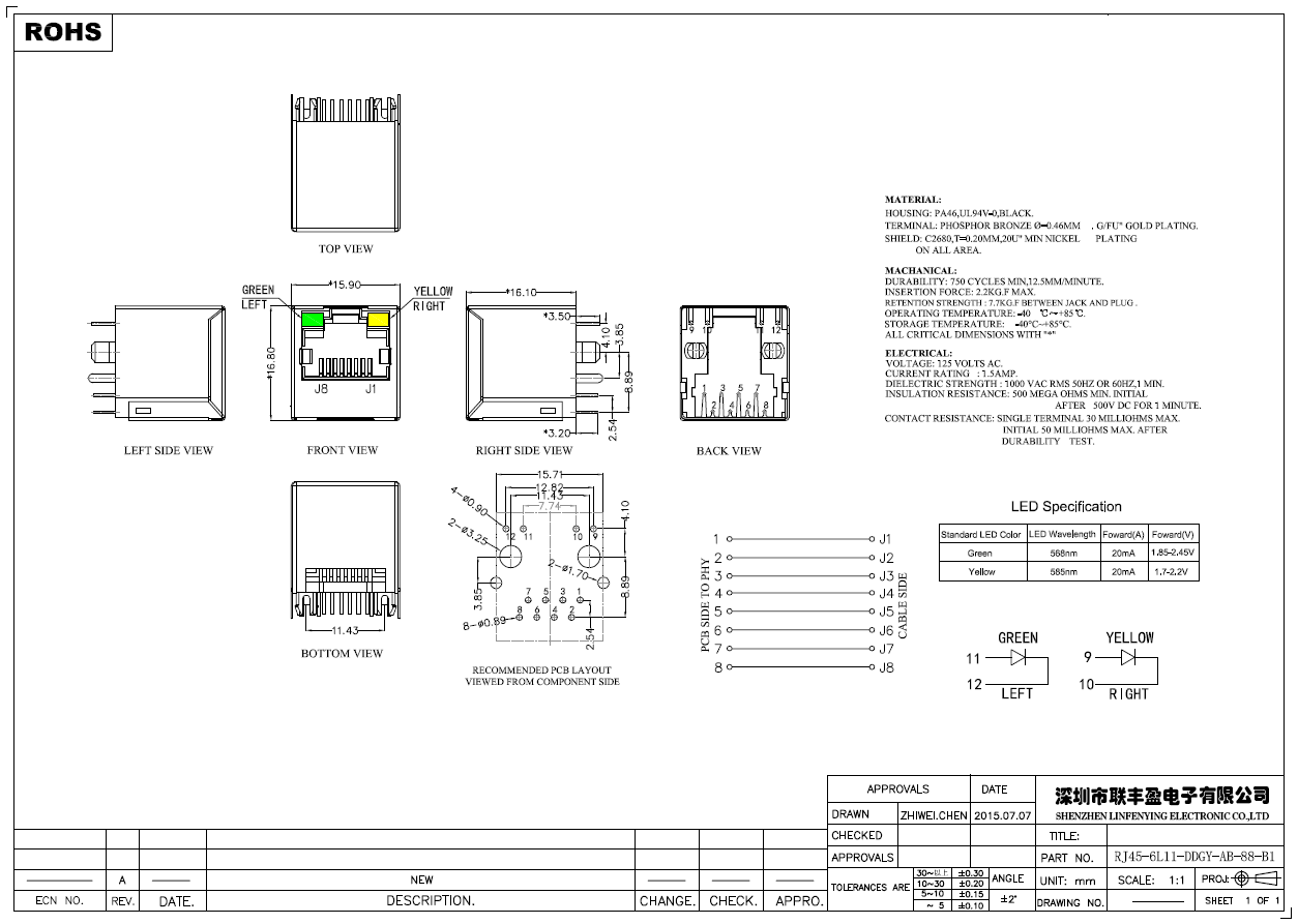 RJ45/RJ11 網(wǎng)絡(luò)連接器系列產(chǎn)品技術(shù)參數(shù)