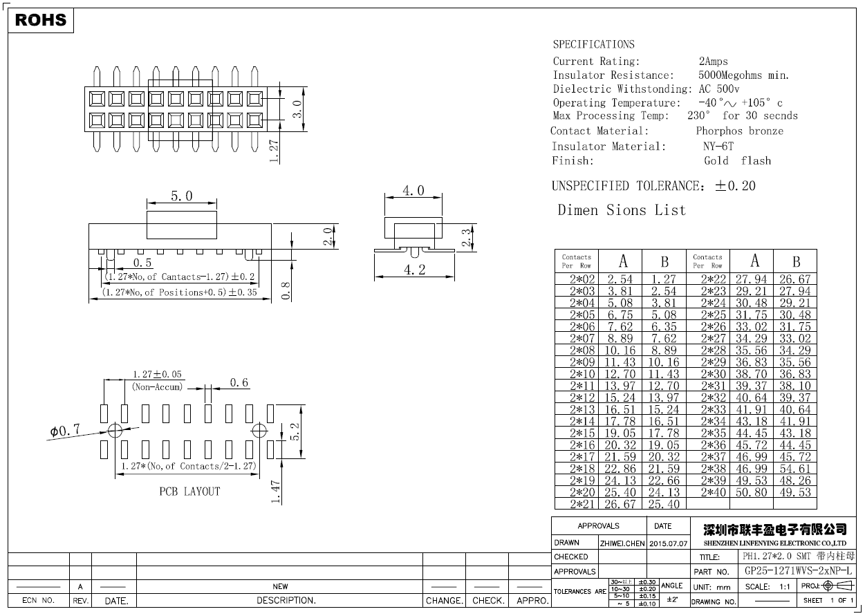 產(chǎn)品簡介品名:排母規(guī)格:貼片/立式180°間距:1.27mmPIN數(shù):2-50PIN備注:排母系列