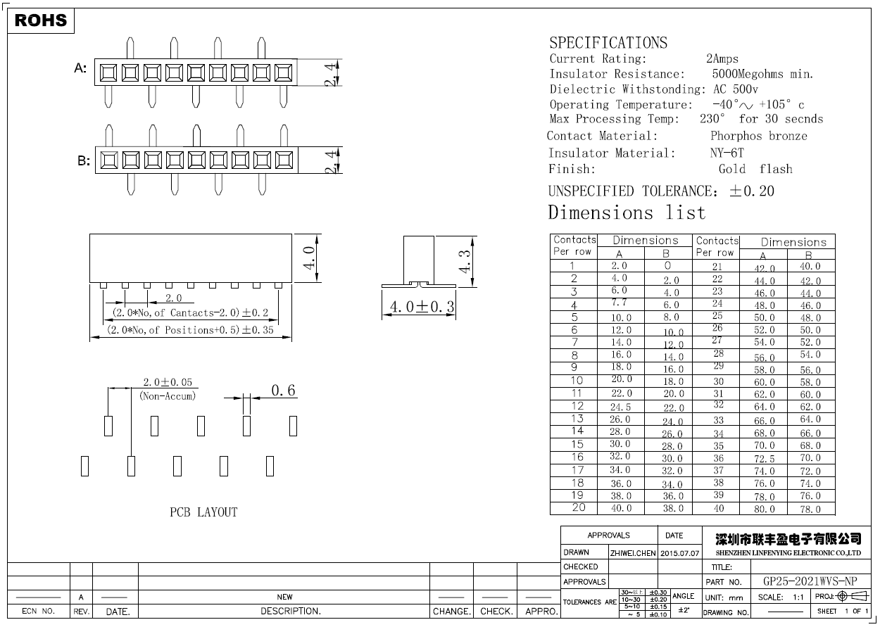 產(chǎn)品簡介品名:排母規(guī)格:貼片/立式180°間距:2.00mmPIN數(shù):2-40PIN備注:排母系列