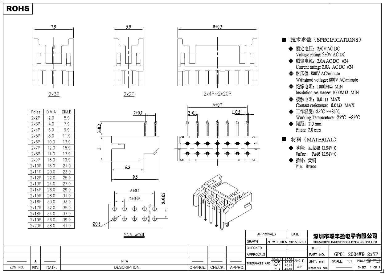 額定電流: 3A, AC/DC 額定電壓: 250V, AC/DC 使用溫度范圍: -25℃-+85℃ 接觸電阻: 10M max 絕緣電阻 : 1000M min 耐壓 : 800V AC/minute 產(chǎn)品應(yīng)用: 應(yīng)用于各類室內(nèi)外LED智能照明燈條、TV背光模塊LED燈條、