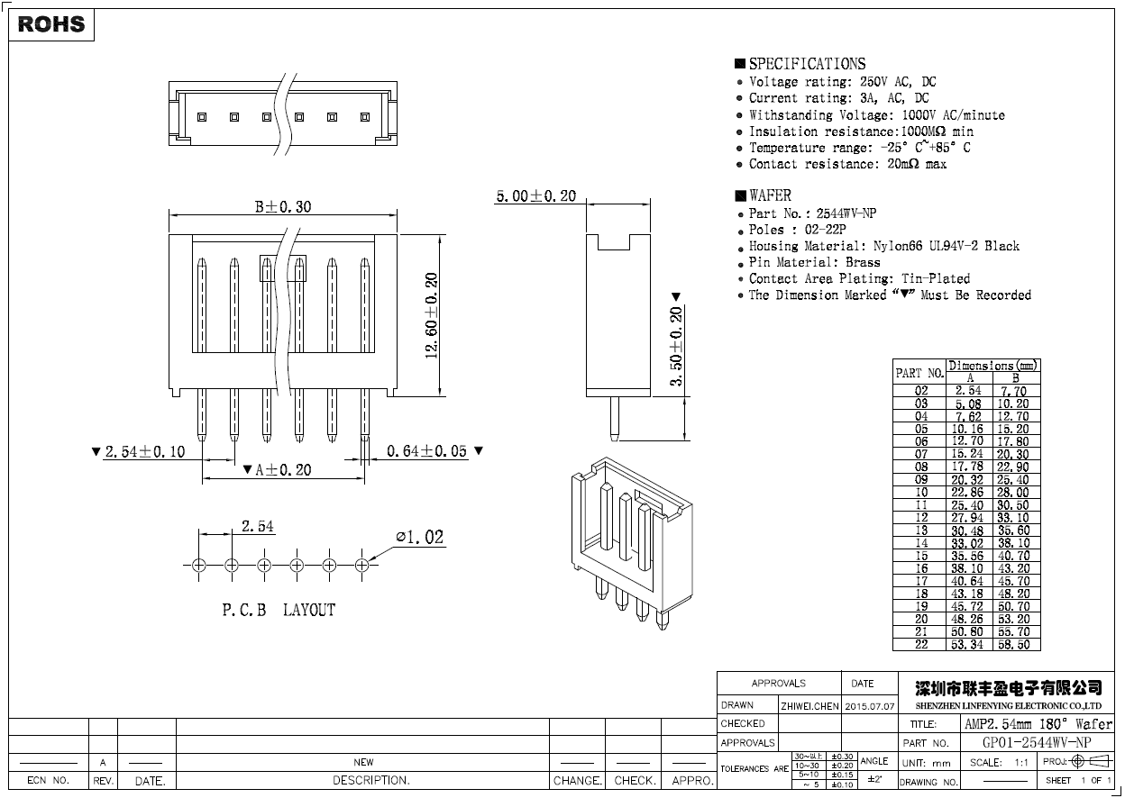 產(chǎn)品簡(jiǎn)介品名:線對(duì)板連接器規(guī)格:直式/插件180°間距:2.50mmPIN數(shù):2-22PIN